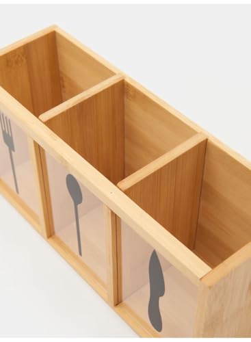 Generic - حامل شوكة وملعقة وسكاكين كبير مكون من 3 اقسام من الخشب والاكريليك، لمسة نهائية من الخيزران المقاوم للماء، ديكور ممتاز لمساحة الطعام الخاصة بك، سعة كبيرة