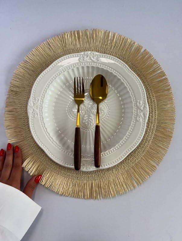 Generic - كوستر خيش ديكوري كبير مقاس 38 سم مفرش طاولة طبيعي لتقديم الأطباق بلمسة عصرية عدد 2 قطعة