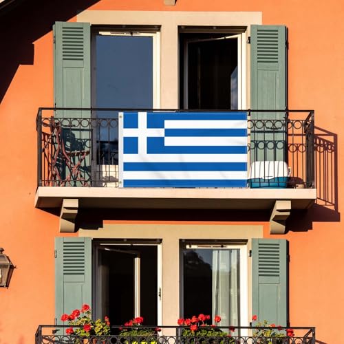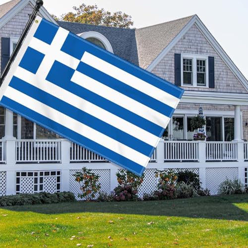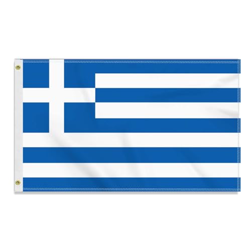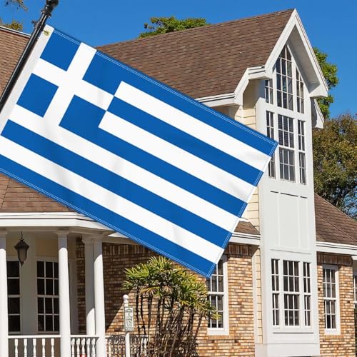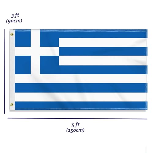 Petite Pine - علم اليونان كبير 90 × 150 سم، لافتة صداقة يونانية كبيرة 150 دي، علم المانيا طباعة جانبية دوبي ديكور ثقوب نحاسية كبيرة اليونان
