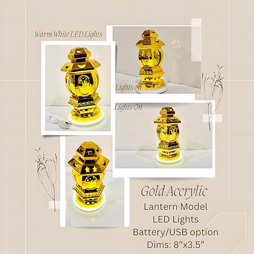 Generic - فانوس رمضان كلاسيكي كبير من الأكريليك يعمل بالبطارية أو منفذ USB بإضاءة ذهبية دافئة تضيف أناقة ودفئًا للمكان وخيار مثالي للتزيين في المناسبات أو لتقديمه كهدية مميزة - مقاس 25 × 13 سم