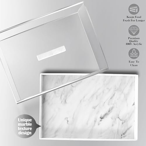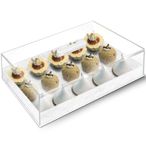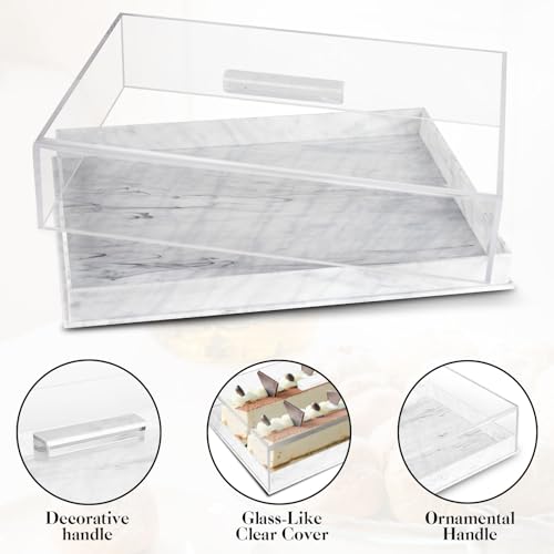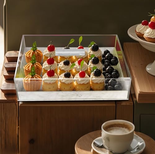 - عرض شفاف - يكشف عن كل التفاصيل: قدم حلوياتك وأطباقك الشهية تحت غطاء شفاف يبرز كل التفاصيل بدقة. من الكعك والدونات إلى الكب كيك والخبز والبسكويت والمعجنات والفواكه، كل شيء يكتسب جاذبية إضافية مع رؤية واضحة وخالية من العيوب. في الوقت نفسه، تحافظ صينية التقديم المصنوعة من الأكريليك على نضارة الحلويات وتحميها من الأوساخ والغبار.