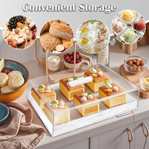 Pay Extra Tenderness - صينية كيك مستطيلة كبيرة من الأكريليك - حامل كيك مستطيل متعدد الوظائف مع غطاء شفاف - صينية تقديم - صينية حامل حلوى للحفلات المنزلية والمطبخ - حوامل شاي بعد الظهر (29 × 11.94 × 39 سم)