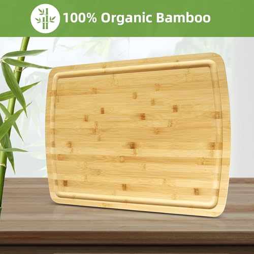 ExploreHorizon - لوح تقطيع كبير من خشب الخيزران، لوح تقطيع خشب متين مع أخاديد عميقة للعصارة، مناسب للسكاكين وسهل التنظيف، للمطبخ المنزلي والتجاري، مقاس 50× 38 سم