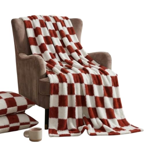 Generic - بطانية سرير كبيرة بنقش ليزر، مقاس 220×240 سم، وزن 1600 جرام، نمط مربعات باللون الأحمر والأبيض