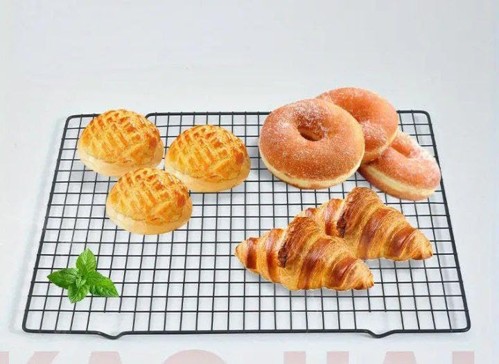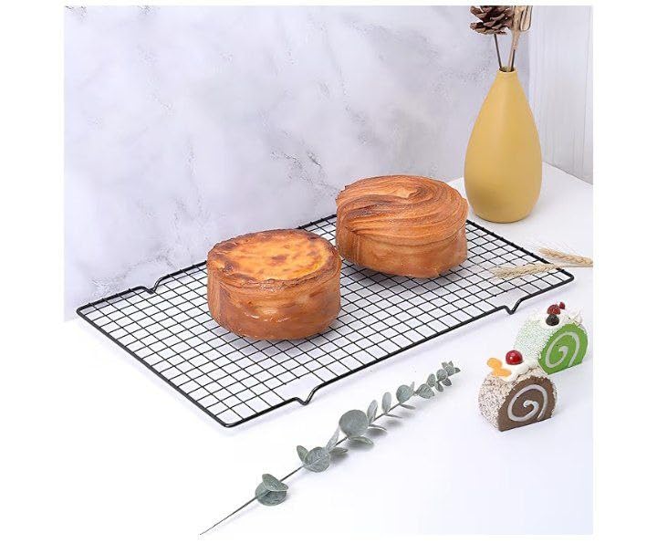 - تدفق الهواء ودوران الحرارة: مصمم لتحسين التهوية، يمنع هذا الرف المخبوزات المبللة ويضمن الطهي والقرمش المتساوي. مثالي للجاناش أو عمل الشوكولاتة أو رفع الطعام لتبريد أسرع وعرض احترافي.
