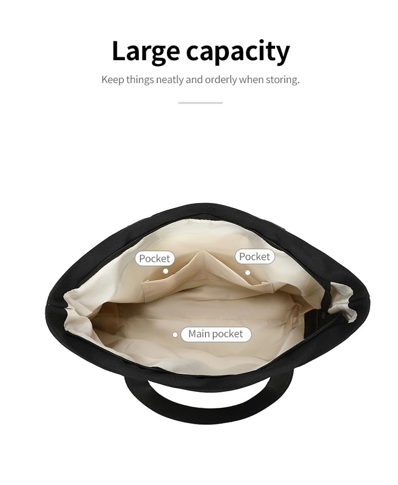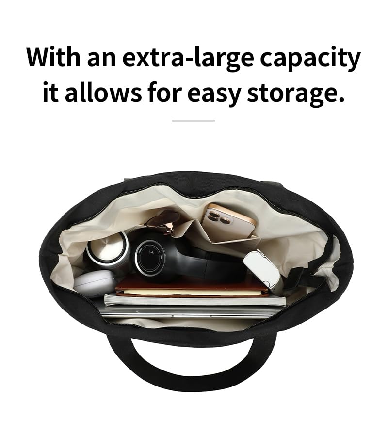 Generic - شنطة يد كبيرة توت قماشية للنساء، شنطة يد بسحاب سعة 17 لتر بجيب داخلي للتسوق والمكتب والاستخدام اليومي 40 × 32 × 14 سم - D031 - اوف وايت