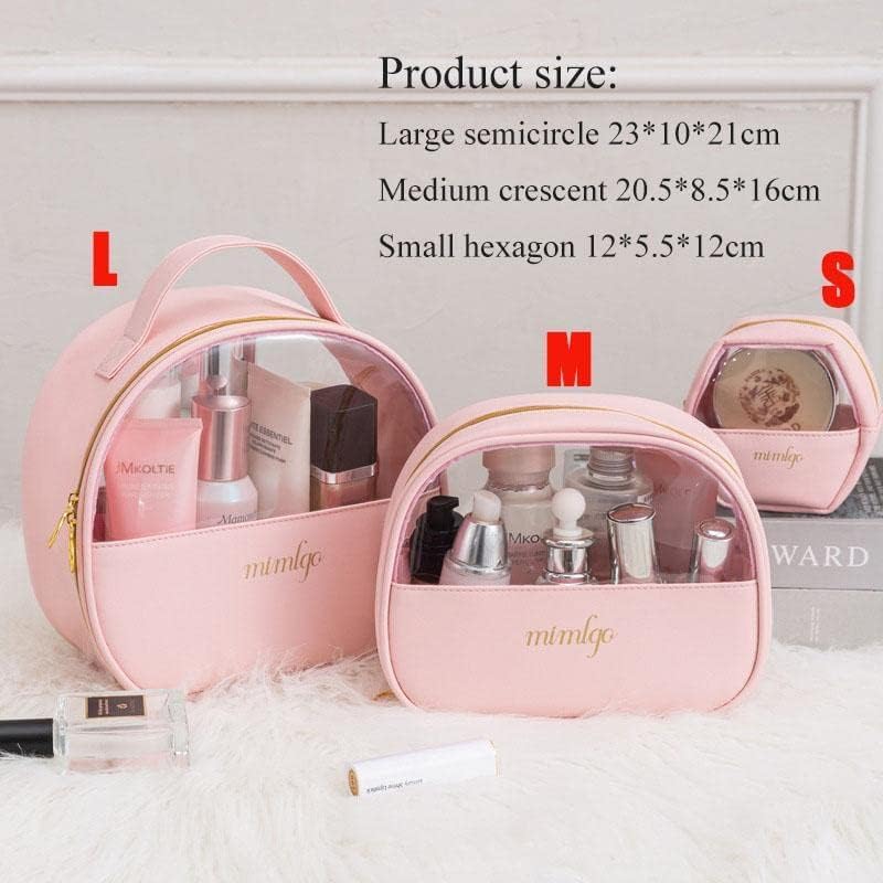 Generic - شنطة مستحضرات تجميل بسعة كبيرة للنساء، شنطة سفر محمولة لتخزين ادوات الزينة والمكياج للبنات والنساء، منظم شفاف مقاوم للماء (وردي، مقاس M)