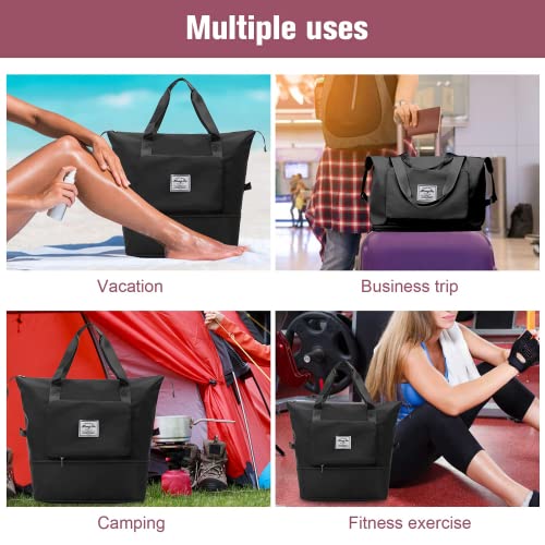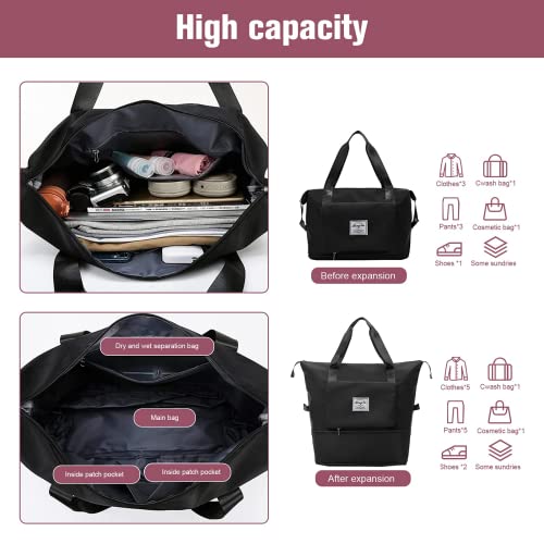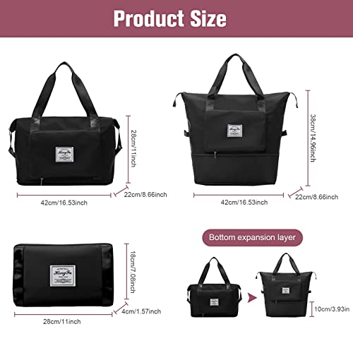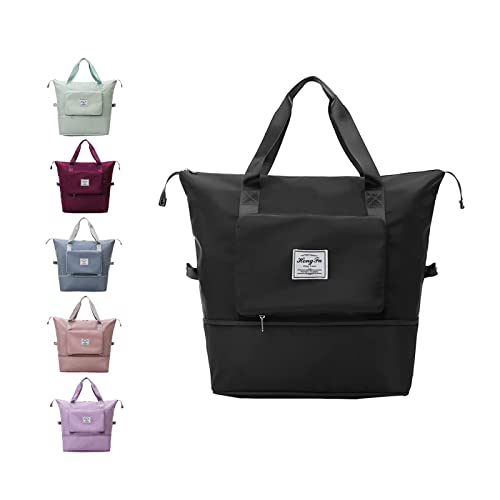 SurmountWay - شنطة دفل ويكيندر للسفر كبيرة السعة وقابلة للطي والتكبير وخفيفة الوزن ومقاومة للماء وتتضمن فصلا للاغراض الرطبة والجافة ومناسبة للرياضة والسفر والعطل والامتعة للنساء, أسود