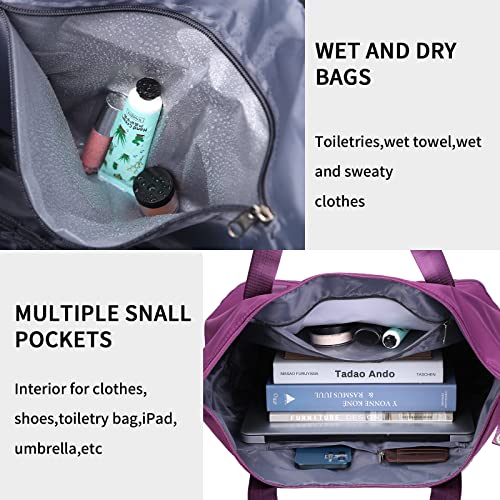 - 【 تصميم قابل للطي】توفر مساحة كبيرة بعد الطي. شنطة الكتف هذه محمولة وتأتي بقسم جاف ورطب وتُعتبر مثالية لوضع شنطة الدفل