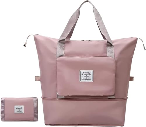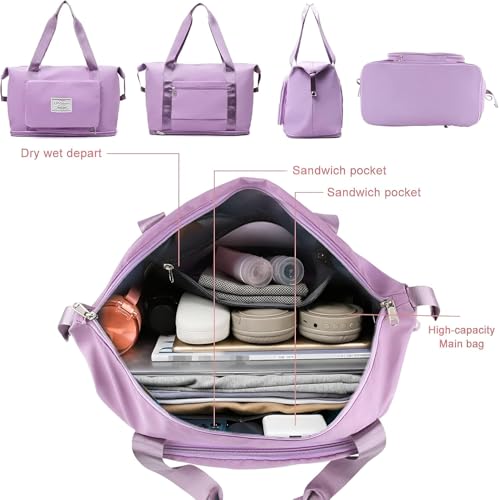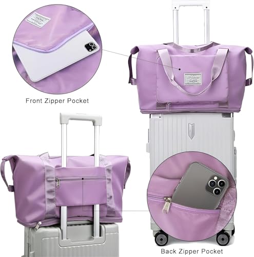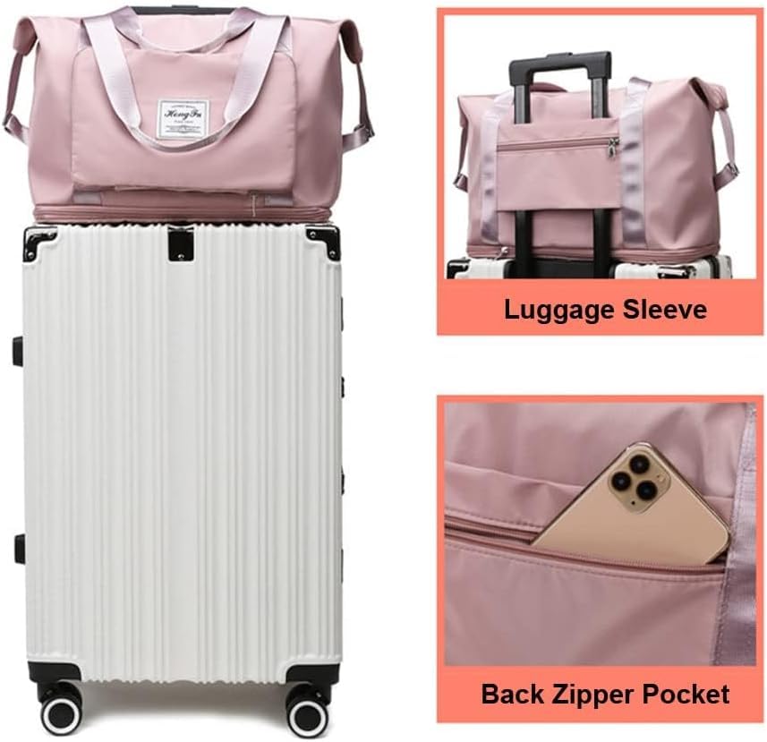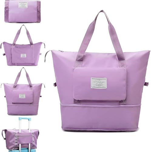 Generic - شنطة سفر قابلة للطي بسعة كبيرة، شنطة قماشية مقاومة للماء وقابلة للتوسيع مع فصل جاف ورطب، خفيفة الوزن ومحمولة للطائرات وصالة الالعاب الرياضية والرحلات - شنطة كتف رياضية (زهري وارجواني)