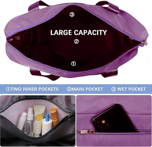 - شنطة سفر قابلة للطي بسعة كبيرة، شنطة جيم خفيفة الوزن ومقاومة للماء مع شنطة فصل للاستخدام الرطب والجاف، شنطة للسفر والرياضة والجيم