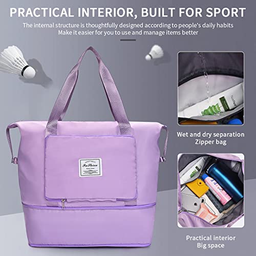Zeuku - شنطة سفر حريمي ورجالي قابلة للطي بسعة كبيرة دفل مقاومة للماء للسفر شفر منظمة للامتعة ليلية للسفر في عطلة نهاية الاسبوع يد كبيرة توت لرياضة صالة الالعاب الرياضية (الجيم), من زيوكو نايلون أرجواني