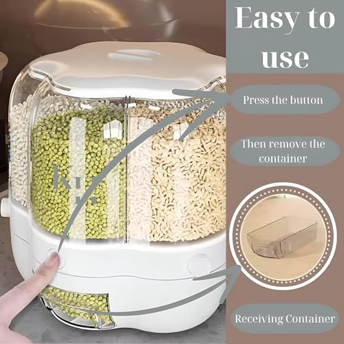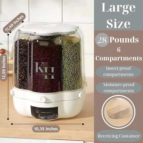 Generic - موزع طعام للمطبخ بسعة كبيرة - تصميم دوار 360 درجة مع 6 صناديق مقاومة للحشرات للارز والحبوب والسكر والمزيد، مقاوم للرطوبة، 29.18 × 26.29 سم