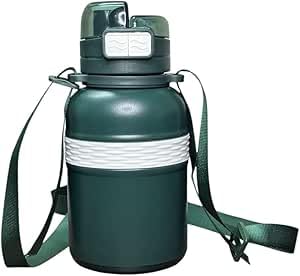 Generic - زجاجة ماء حرارية بسعة كبيرة مع حزام حمل قابل للتعديل، تصميم معزول للحفاظ على حرارة أو برودة المشروبات، مثالية للرحلات والنشاطات الخارجية والرياضية