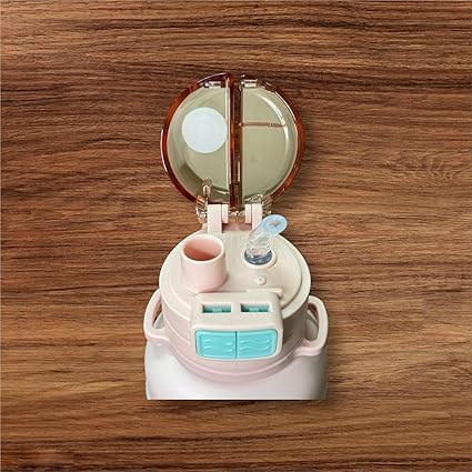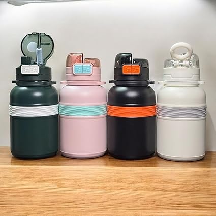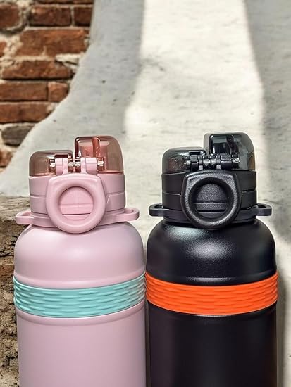 - تصميم مبتكر: زجاجة حرارية مزودة بفتحتين للشرب وغطاء محكم الغلق لمنع التسريب