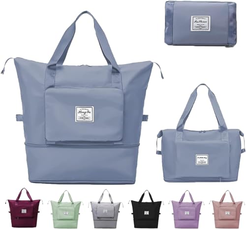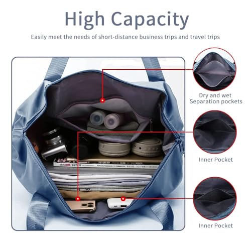 Generic - شنطة سفر بسعة كبيرة، شنطة دفل قابلة للطي والتوسيع، شنطة سفر محمولة لفصل الجاف والرطب، شنطة ليلية للنساء والرجال (ازرق)