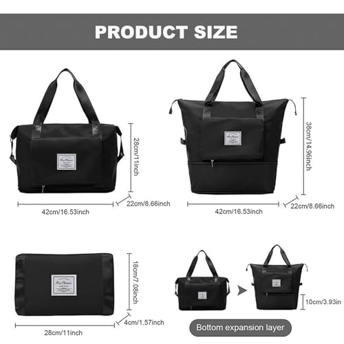 DOJUNS - شنطة سفر دفل قابلة للطي بسعة كبيرة وخفيفة الوزن ومقاومة للماء ة للتوسيع للامتعة بقسم منفصل للنساء والرجال أسود قماش من دوجونز