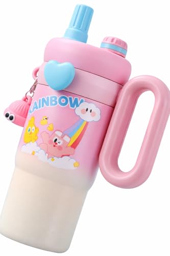 Generic - كوب سفر بسعة كبيرة 850 مل، كوب ستانلس ستيل معزول بتفريغ الهواء مع مقبض وماصة، كوب بجدار مزدوج مقاوم للتسرب خال من BPA للمشروبات الساخنة والباردة، للاستخدام اليومي F-1532 (بينك)