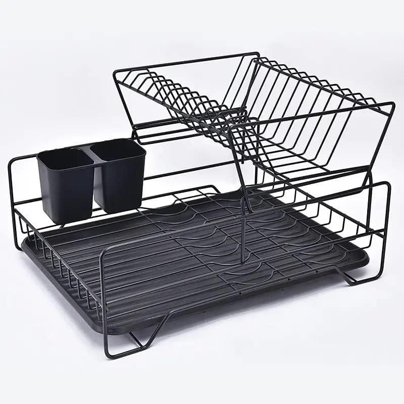 GENERIC - رف تجفيف اطباق بسعة كبيرة من طبقتين مع صينية تصريف واطار متعرج - منظم رف مطبخ مقاوم للصدا للاوعية والاطباق