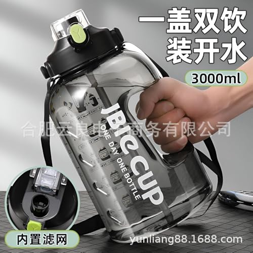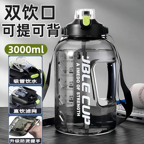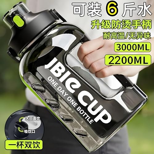 Generic - زجاجة مياه رياضية بسعة كبيرة مقاومة للتسرب سعة 3 لتر مع ملصقات زمنية تحفيزية للياقة البدنية والسفر والاأشطة الخارجية