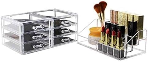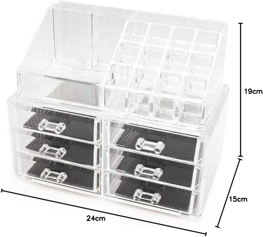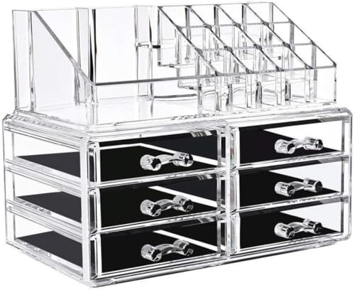 Generic - منظم مكياج أكريليك شفاف كبير مع أدراج، حافظة تخزين مستحضرات التجميل قابلة للتكديس للفرش والباليتات وأحمر الشفاه وملحقات طلاء الأظافر
