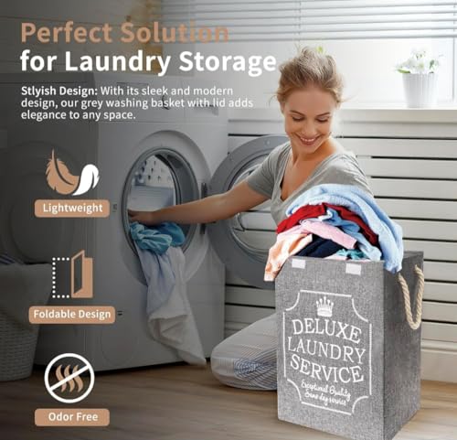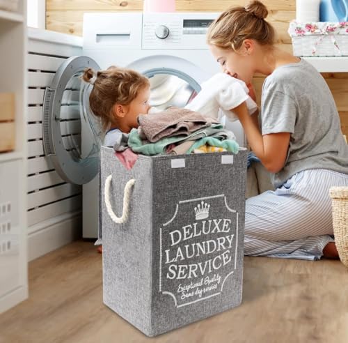 - تصميم جذاب: قماش بلون رمادي فاتح بمظهر الكتان مع طباعة أنيقة "خدمة غسيل فاخرة"، يكمل ديكور أي غرفة مع الحفاظ على الأداء العملي