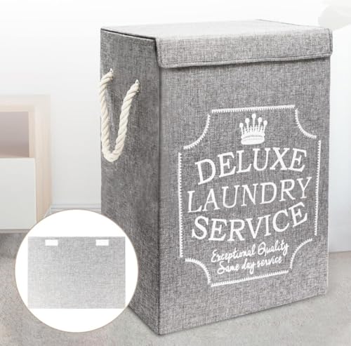 Generic - سلة تخزين كبيرة قابلة للطي، سلة تخزين من الكتان الرمادي مع غطاء ومقابض حبل، سعة 66 لتر، 54.6سم × 40سم × 30سم