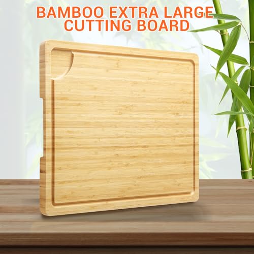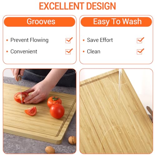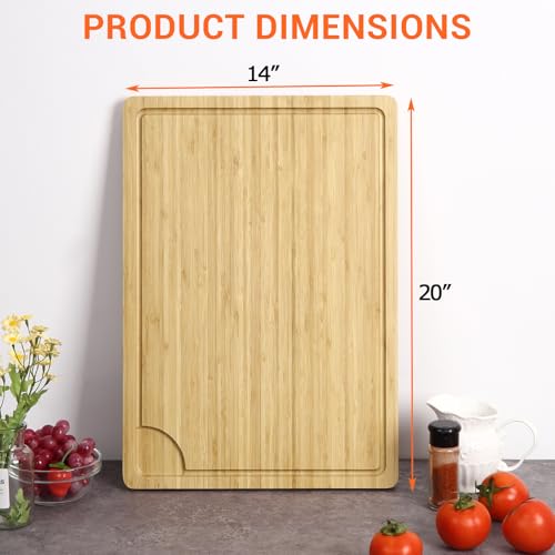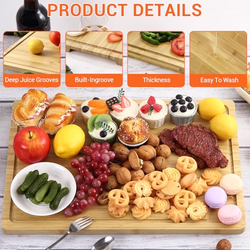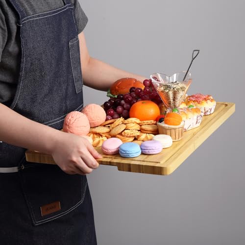 MilleLoom - لوح تقطيع كبير للمطبخ، لوح تقطيع من خشب البامبو مقاس 20 × 14 انش مع اخدود للعصير، لوح جبن قابل للعكس، صينية تقديم تشاركوتيري