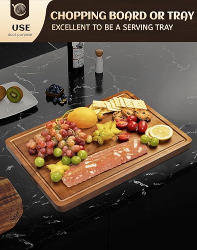 wood work - لوح تقطيع خشبي كبير قابل للعكس للمطبخ، مقاس 43 × 30.5 × 5 سم مع أخاديد ومقابض للعصير، مناسب للحوم والجبن والخضروات والفواكه والخبز