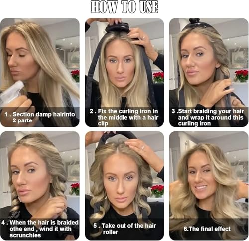 - تحتوي العبوة على مكواة تمويج بدون حرارة ومشبك شعر وربطتين للشعر، وهي جيدة المظهر