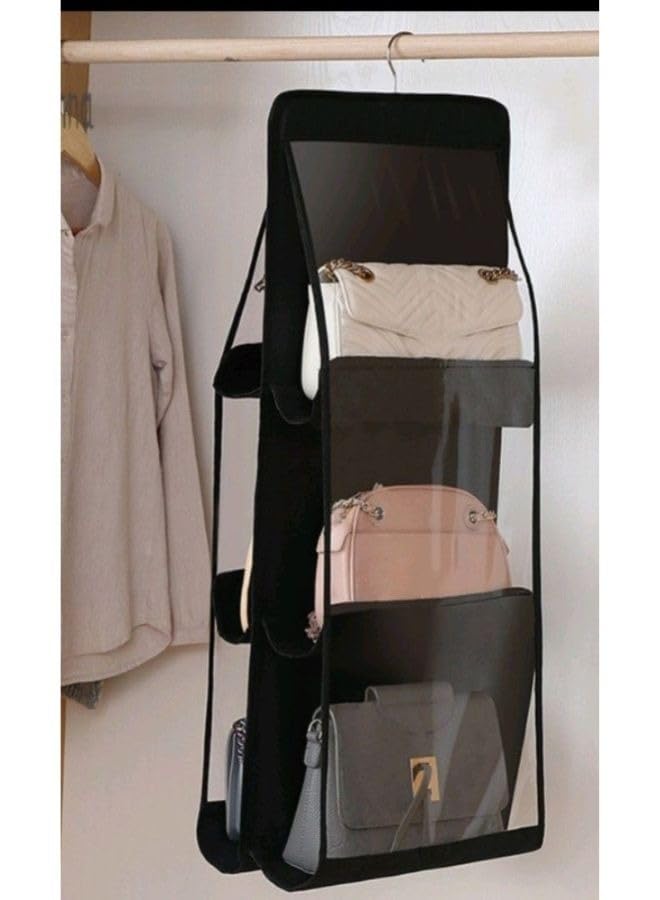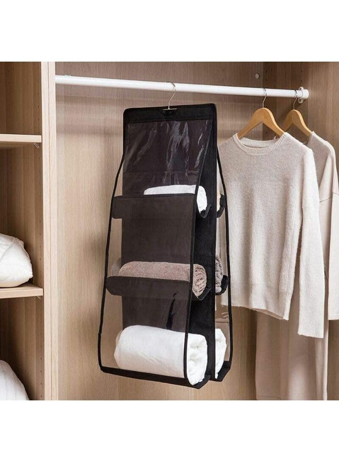 Happy Home - منظم شنط يد كبير قابل للطي بـ6 جيوب وسهل الاستخدام (أسود)