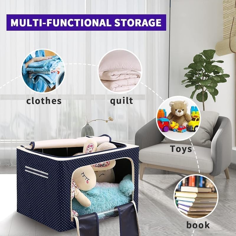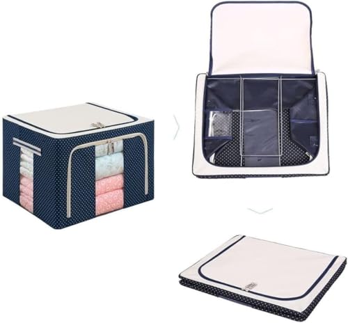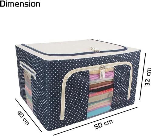 Generic - شنطة تخزين كبيرة قابلة للطي بقوائم معدنية مضادة للصدأ – منظم ملابس ومفروشات بسحّابين ومقابض جانبية، نافذة شفافة، مقاومة للماء والغبار، تصميم أنيق وعالي السعة