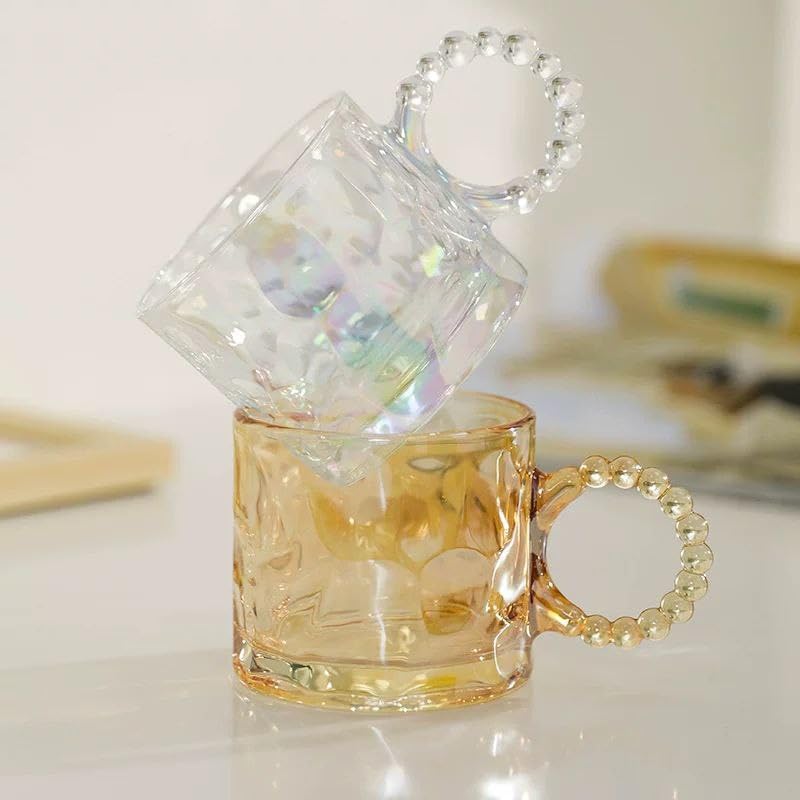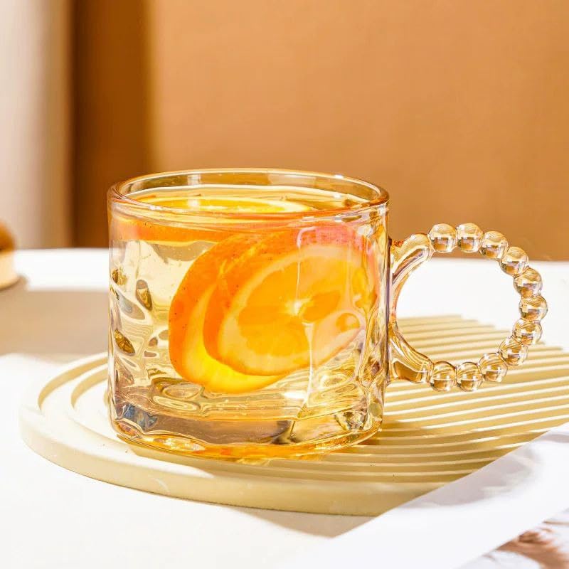 - عزز تجارب الشاي أو القهوة الخاصة بك مع الكوب الأنيق والفاخر. فهذا المج مصنوع يدويًا بحرفية متقنة وشكل جميل من الزجاج. كما يتميز بتصميم فريد يعطي المج لمعانًا طبيعيًا. إكسسوار جميل للشاي والقهوة والاسبريسو والشاي المثلج والماتشا. هدية مثالية لجميع المناسبات. طقم مجات زجاجية جميلة مع مقبض. احصل على هذه المجات الجميلة لتعزز جمال منزلك