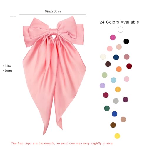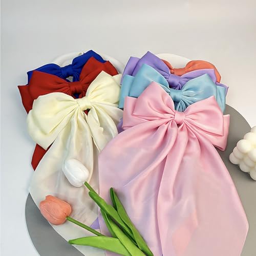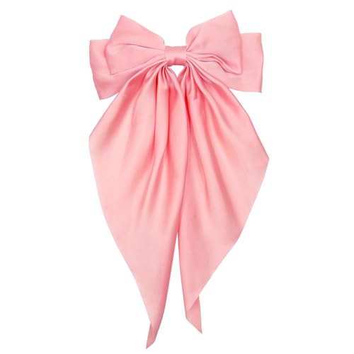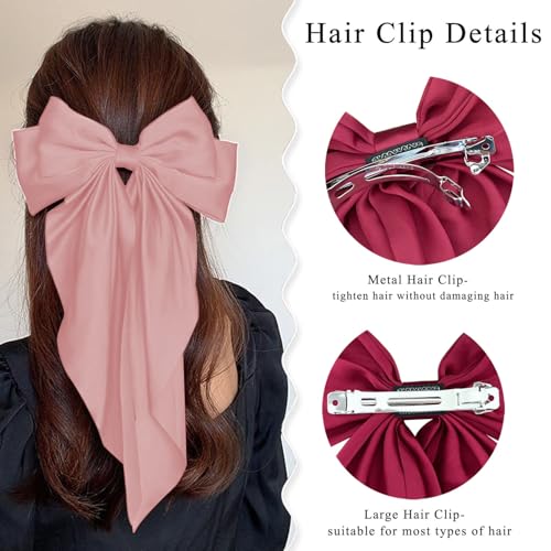Vigleco - مشابك شعر ساتان كبيرة الحجم للنساء، مشابك بشريط عتيق، مشابك معدنية، ذيل طويل، مجموعة (1، احمر بطيخي)