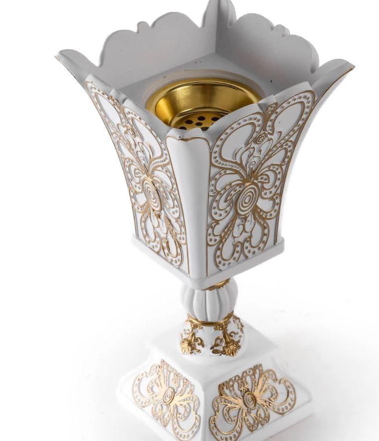 - تصميم أنيق: مبخرة مزخرفة تتميز بأنماط فراشة مفرغة معقدة باللون الأبيض مع لمسات ذهبية، مما يضيف لمسة من الرقي إلى ديكور أي غرفة