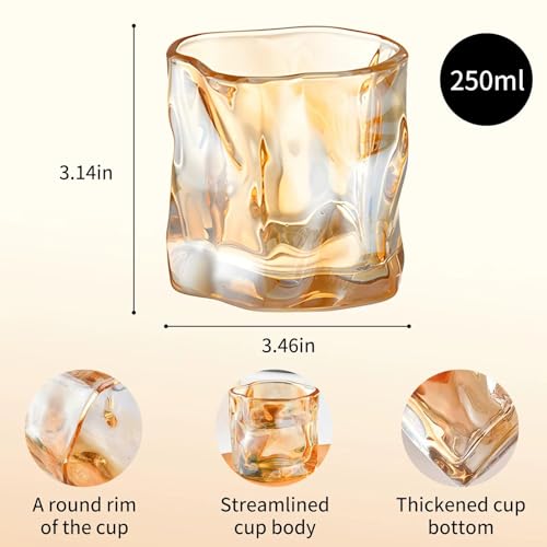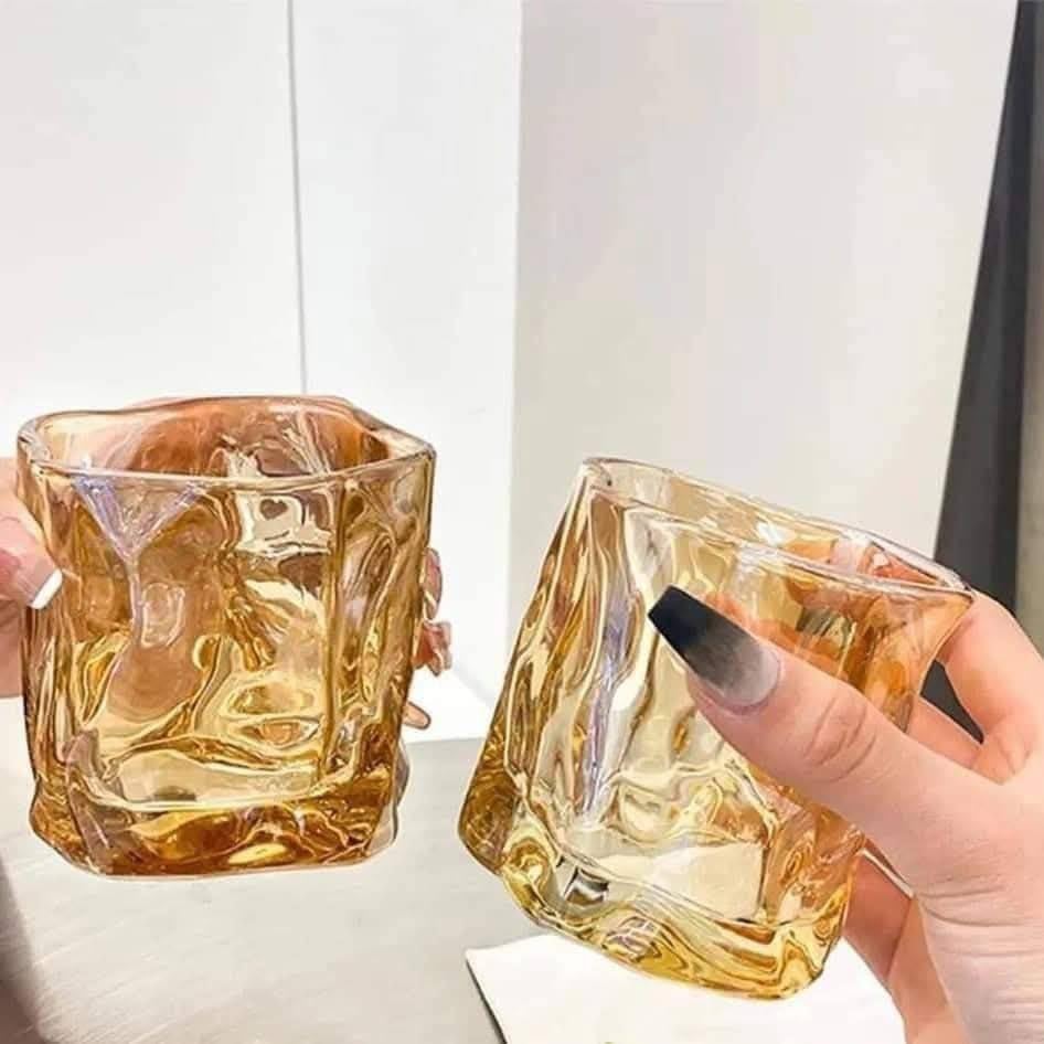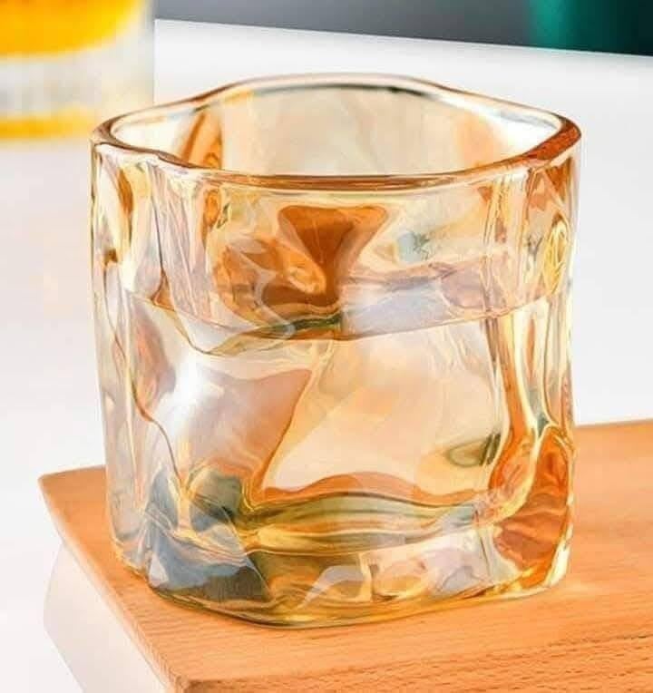 Generic - "طقم كؤوس زجاجية عصير حجم كبير - لون عسلي مضلّع - مستورد - يضمّ 6 أكواب" - من جينيريك