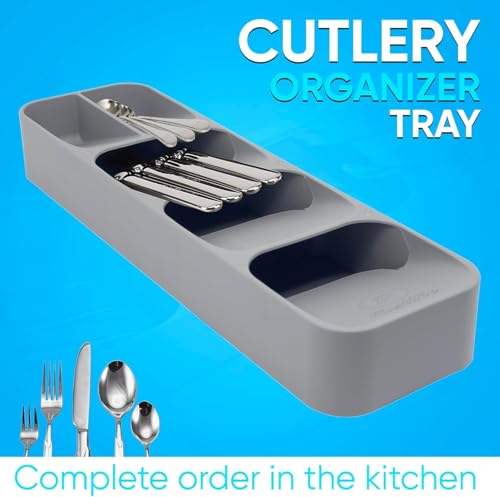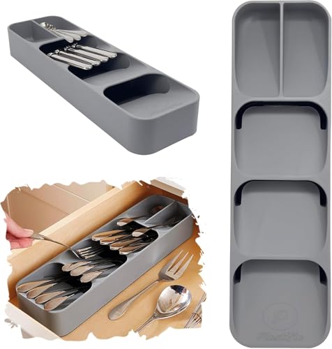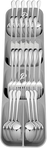 Generic - منظم أدوات مطبخ كبير لدرج الملاعق والشوك مصنوع من البلاستيك وحامل عميق لأدوات المائدة، لون رمادي، مقاس 39.5 سم × 11.5 سم × 5.5 سم