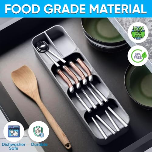 - سعة تخزينية متعددة الاستخدامات: تصميم متعدد الأقسام يستوعب مختلف أدوات تناول الطعام مثل الشوك والسكاكين والمعالق وأدوات التقديم.