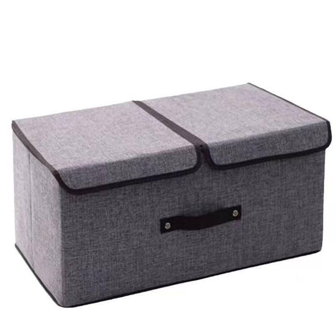 Generic - شنطة تخزين كتان كبير قابل للطي بحجرتين وسعة 50×30 سم لتنظيم الملابس الداخلية والقمصان والمناشف – صندوق تخزين قماشي أنيق بغطاء محكم لتوفير المساحة والحفاظ على ترتيب المنزل
