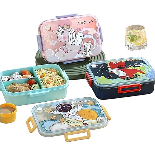 Generic - علبه غداء كبير - بسعة 1200 مل للأطفال مع 3 أقسام يتضمن وعاء سلطة سعة 80 تصميم يونيكورن جميل يأتي أدوات مائدة لسهولة تناول الغداء في المدرسة دورين البولي بروبلين متعدد