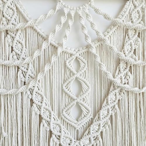 - تصميم مصنوع يدويًا: مكرمية منسوجة بشكل معقد للتعليق على الحائط تتميز بأنماط هندسية أنيقة وشراشيب متدفقة، مصنوعة من حبل قطني فاخر.