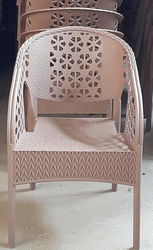 Generic - كرسى بلاستيك كبير بأرجل صب شديد التحمل، بيج