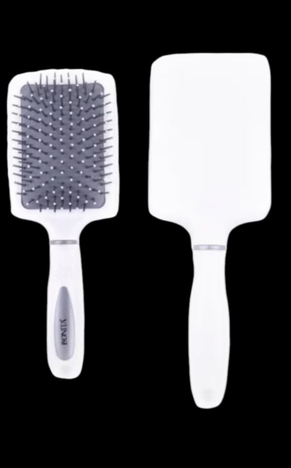 - أسنان مرنة: مزودة بأسنان بلاستيكية مرنة تمنع تقصف الشعر وتقلل من الشد أثناء التمشيط