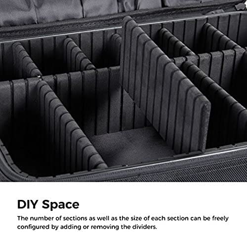 - مساحة يمكنك صنعها بنفسك - يتضمن الجيب الرئيسي 6 فواصل من مادة ايفا قابلة للتعديل، ويمكن تغيير عدد الأقسام وحجمها عن طريق ضبط الفواصل، كي تناسب الشنطة احتياجاتك الشخصية. تمتاز بجيوب على الغطاء لحمل الفرش والدبابيس والمرايا وما إلى ذلك. شنطة ماكياج تحفظ كل القطع بشكل مرتب في مكانها.