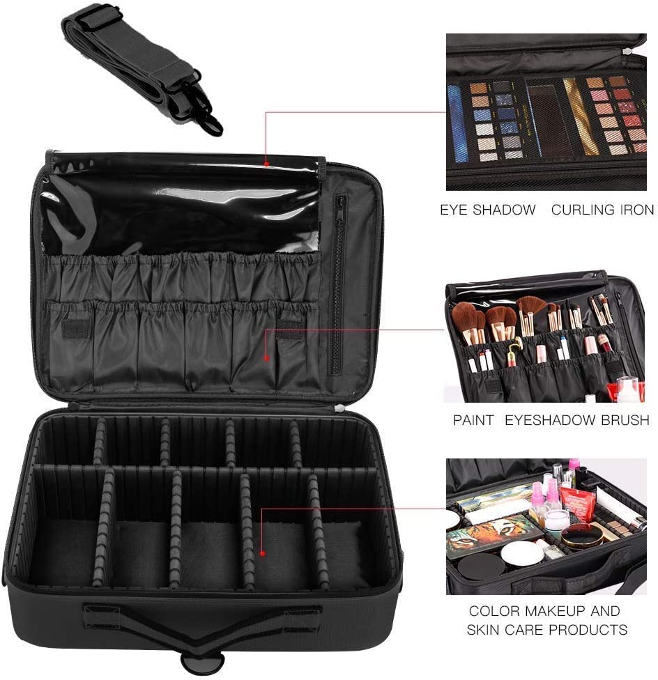 Generic - شنطة مكياج احترافية كبيرة محمولة مع فاصل قابل للازالة مقاومة للماء ومتعددة الوظائف - لون اسود, أسود