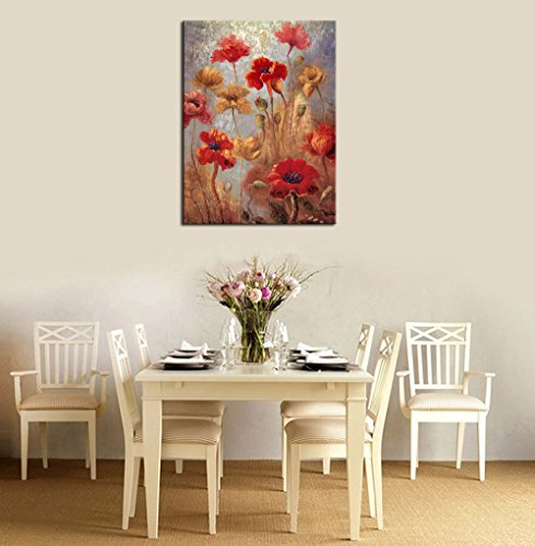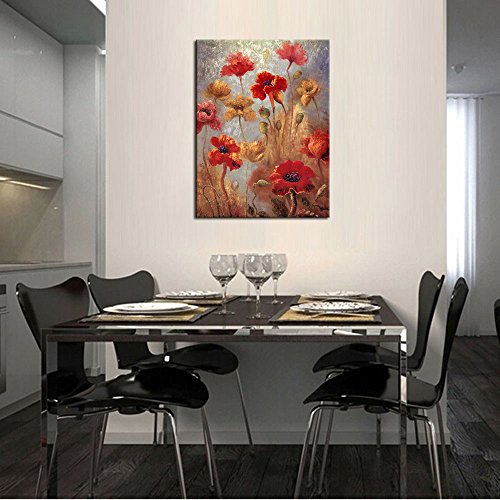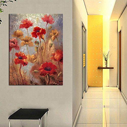 yearainn - لوحة فنية كبيرة من القماش بتصميم زهور حمراء لتزيين غرفة المعيشة، لوحة فنية تجريدية بنمط زهور الخشخاش لغرفة النوم والمكتب والحمام والمطبخ، لوحة ديكور حائط بإطار جاهزة للتعليق، 76 سم × 1 م