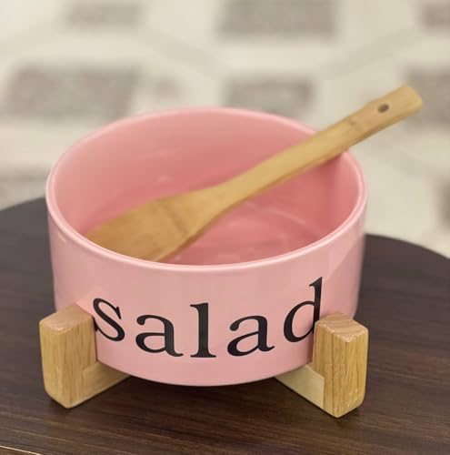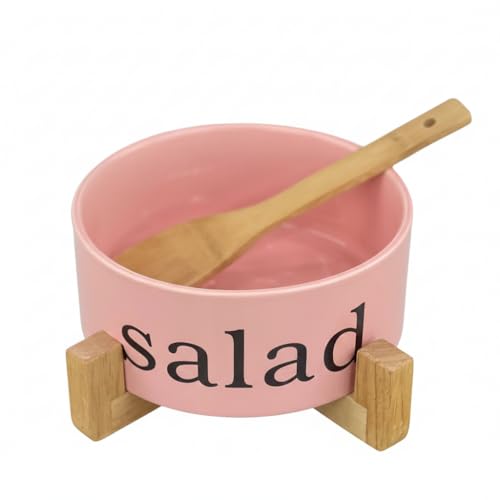 Generic - بولة سلطة كبيرة مع قاعدة خشب ومعلقة خشب