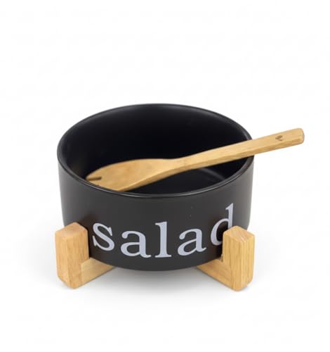 Generic - بولة سلطة كبيرة مع قاعدة خشب ومعلقة خشب – مثالية لتقديم السلطات