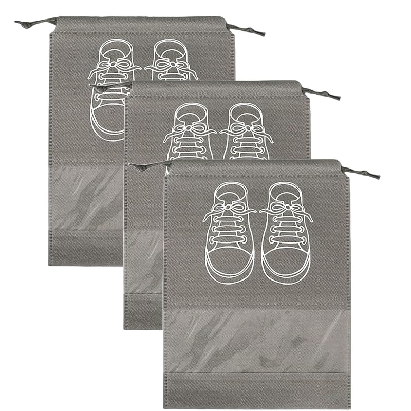 Generic - شنط تخزين احذية كبيرة، شنط احذية برباط مقاومة للغبار مع نافذة شفافة، منظم سفر مقاوم للماء، شنط احذية محمولة - رمادي - 3 قطع