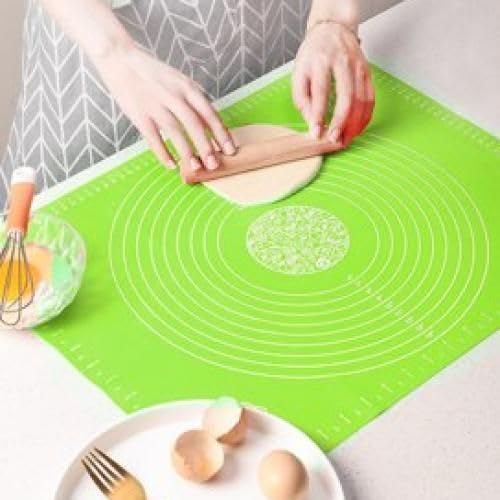 Generic - مفرش عجين سيليكون كبير مع القياسات غير لاصق للخبز والمعجنات وغيرها ، قطعة واحدة ، لون اخضر ..-----..من رنا ستور